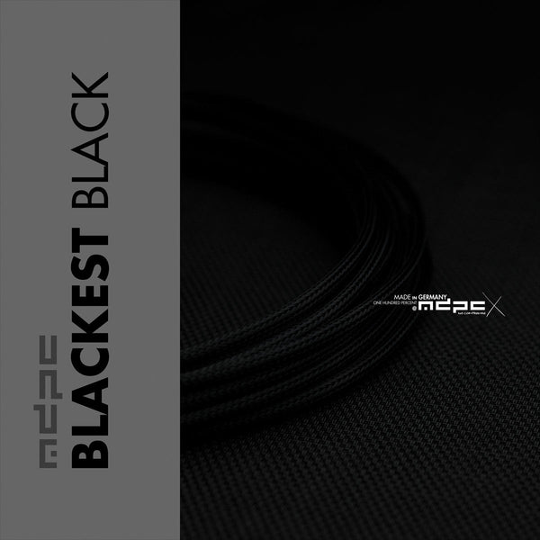 MDPC-X Blackest-Blackは、ケーブルスリーブ界で最も深い黒です。MDPC-Xの最初の伝説的な製品です。2007年に特定のデザイン市場向けに調整された形でケーブルスリーブを作り始めたとき、MDPC-Xは黒のケーブルスリーブだけを提供し、その後1年ごとに次々と色を作り出しました。